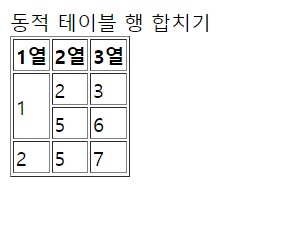 정적 테이블은 <td> 태그에 rowspan = "합칠 열 개수"를 추가하면 된다